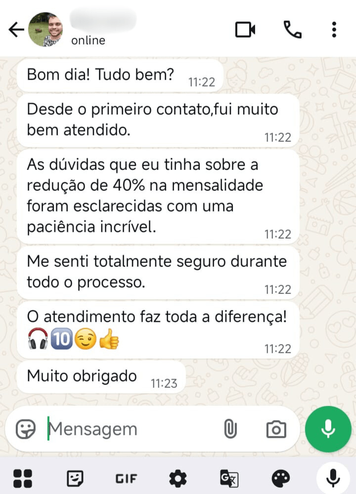 Atendimento direto com profissionais qualificados pelo WhatsApp. Agilidade, clareza e segurança em cada interação, para que você tenha suporte confiável sempre que precisar.